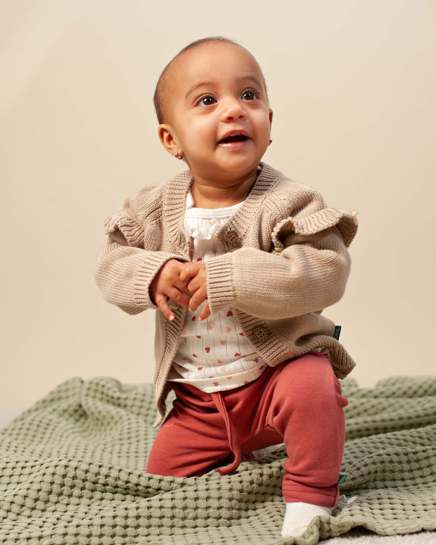 BESS S26 Girls Cardigan Knit Ruffles Peach Powder 261031-087