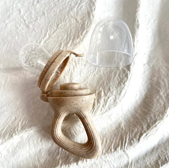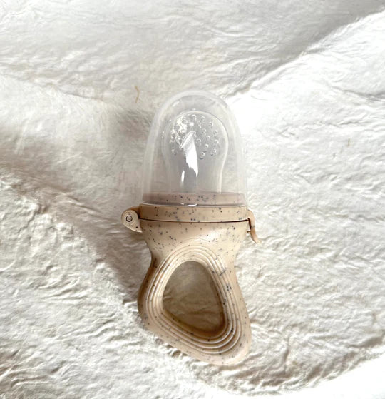 In het silicone mond gedeelte kan je fruit, verschillende groente of het speciale ijsblokje plaatsen en dan weer dicht klikken. Wanneer deze dicht is kan je kleintje op het doorzichtige silicone gedeelte sabbelen en zo alle smaken mee krijgen.